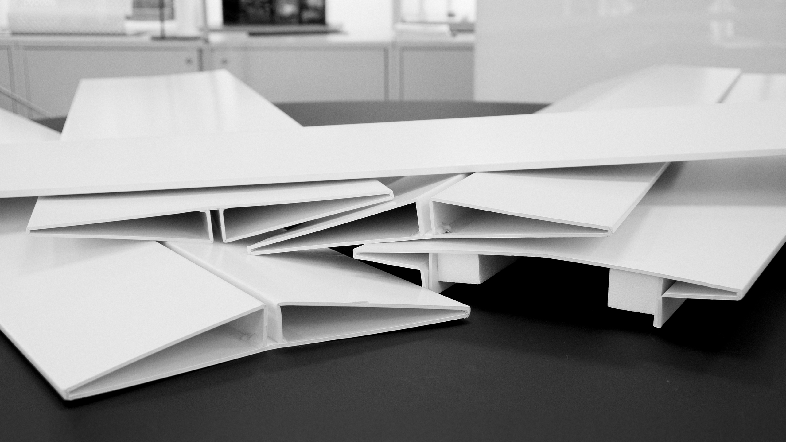The Ava table is inspired by the elegant forms of aircraft wings and bridges, it features two modular segments–a middle section and a cantilevered end–that can be combined to create tables of varying lengths. Its minimalist design highlights a bridge-like structure with refined detailing, while shadow gaps between sections reference architectural traditions.