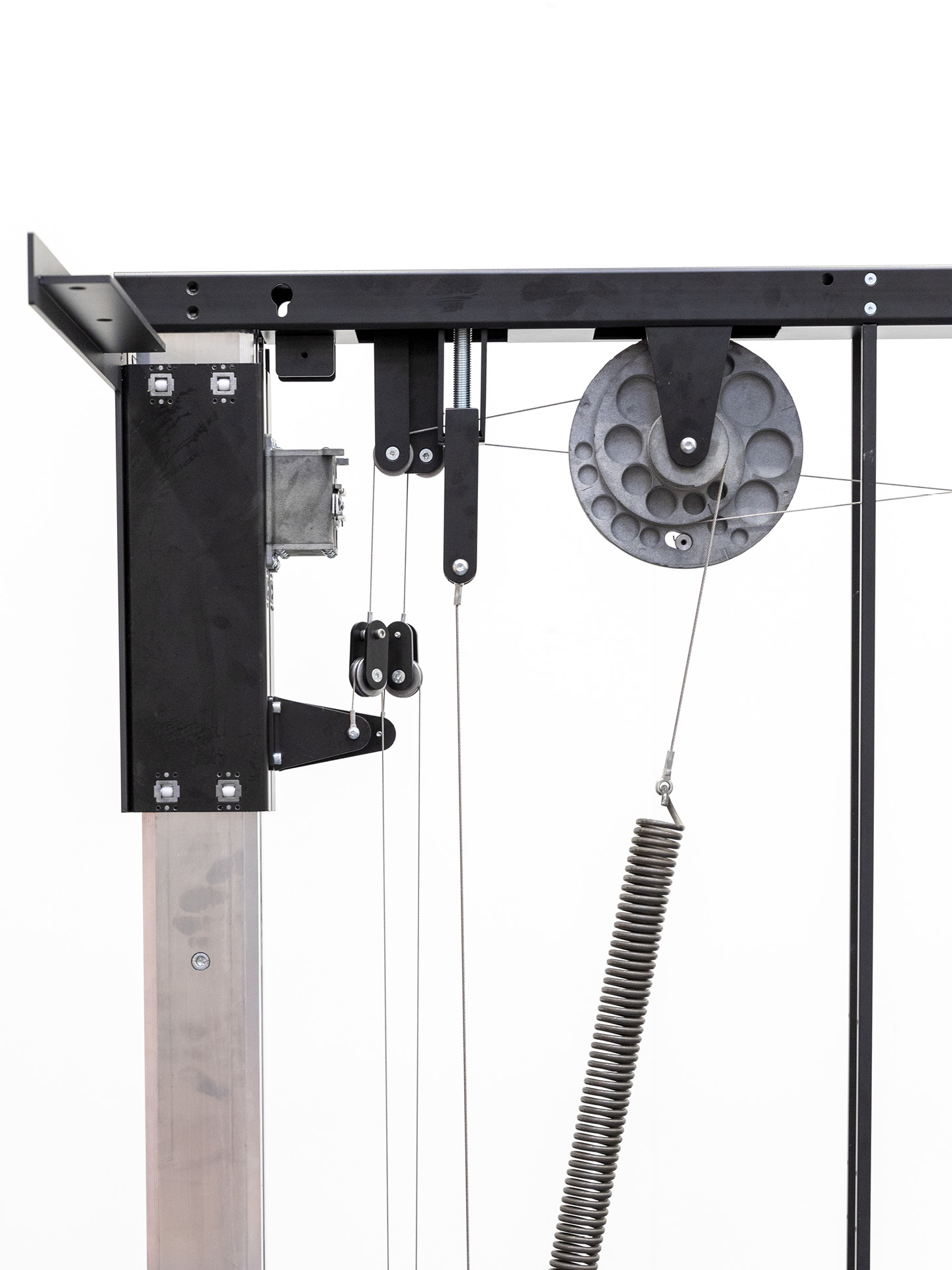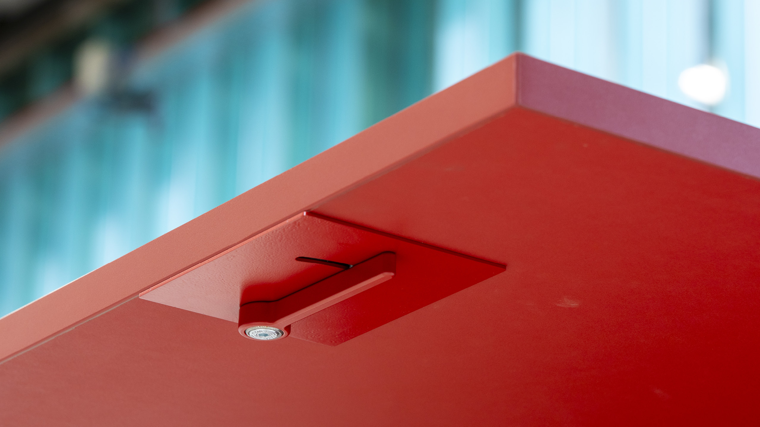 The desk is equipped with a custom-engineered and patented spring and cam mechanism, housed within an aluminium frame, that can adjust and maintain the position of the work surface quickly and intuitively with simple manual pulling and pushing movements. The double-sided frame accepts a range of materials, from acoustic fabric to timber veneers, adding both functionality and versatility to any workspace.