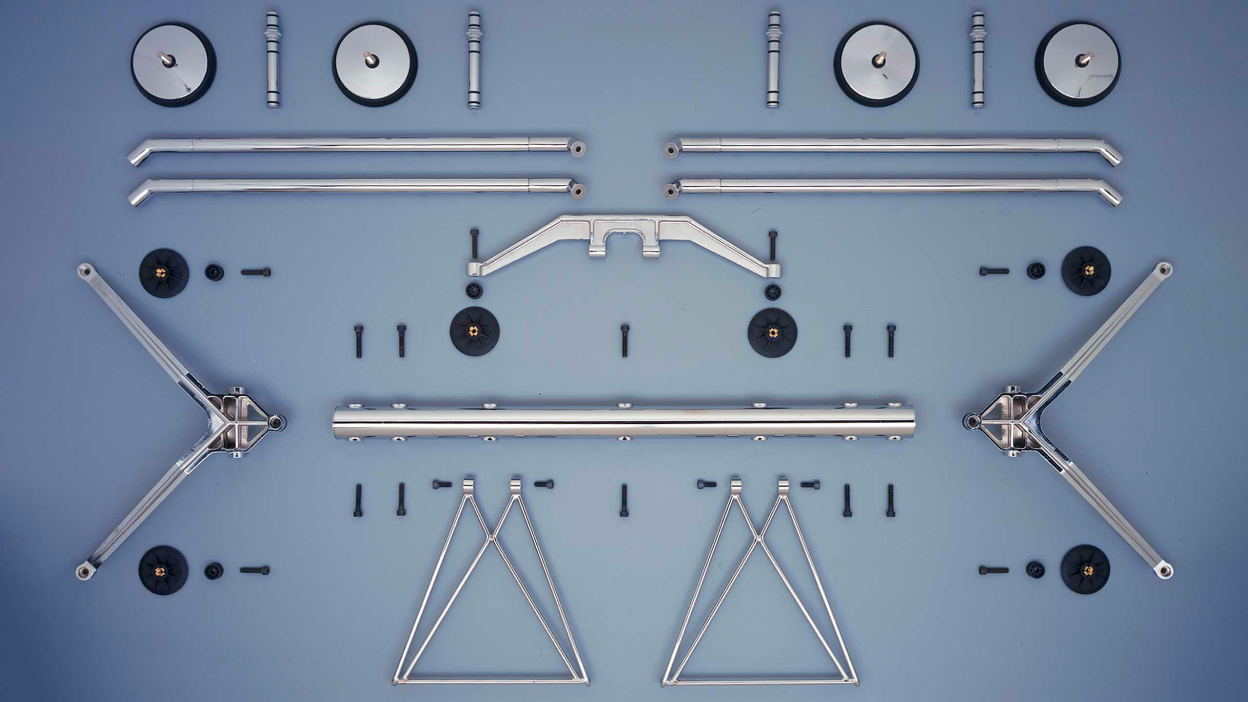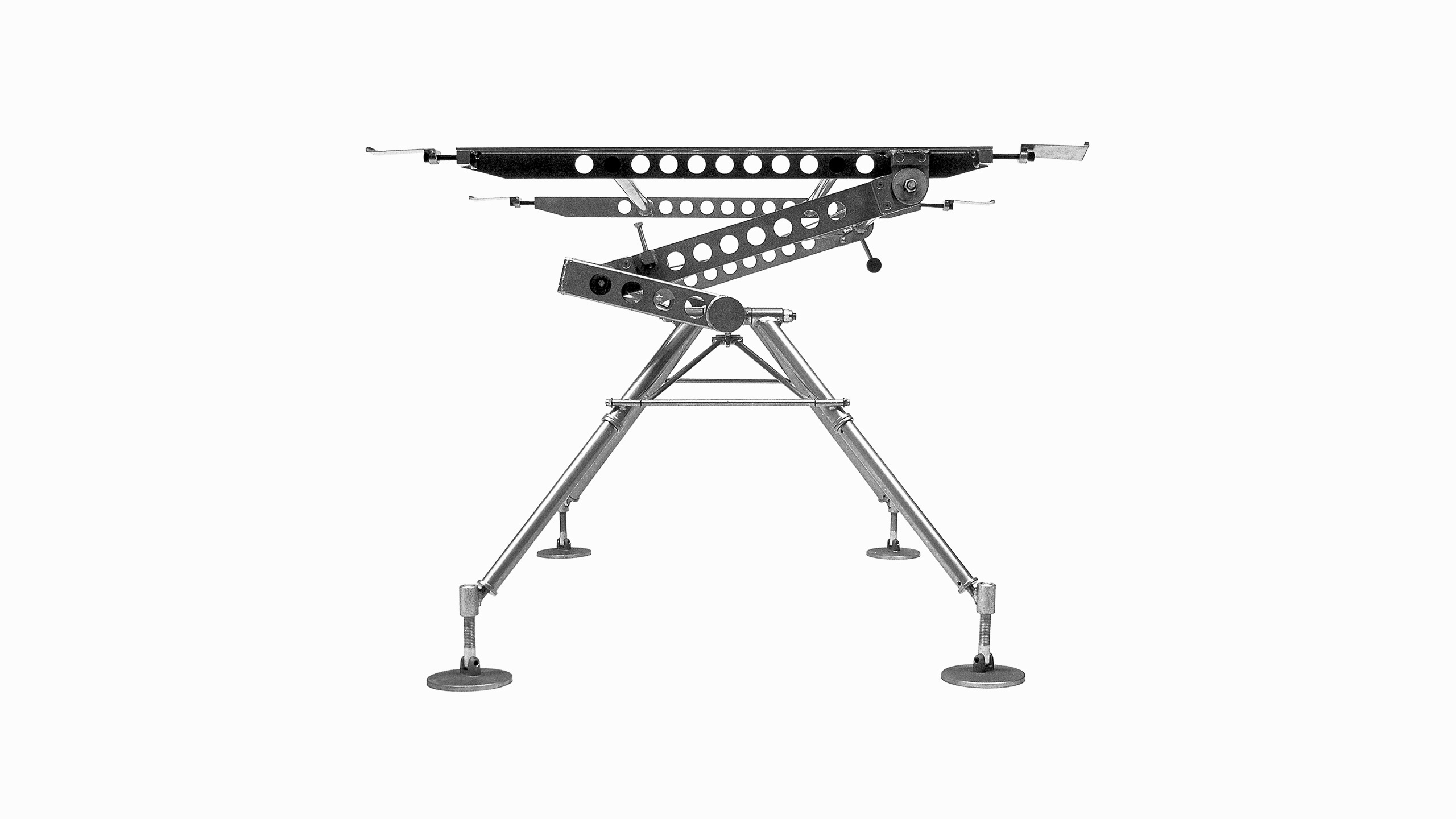 Nomos represents the beginnings of industrial design within Foster + Partners. In 1981, when the practice expanded into a new studio, no existing furniture system could provide tables that might be adjustable for meetings, drafting or display. The outcome was a custom-designed table, made in a small production run by a sympathetic workshop. Modified versions of this table were used in the Renault Distribution Centre, in Swindon, in the reception areas, offices and restaurant. The Italian furniture manufacturer, Tecno, subsequently commissioned the practice to develop the design.